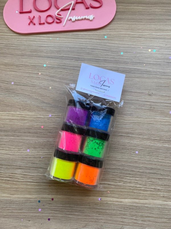Polvos neón brillan con luz uv
